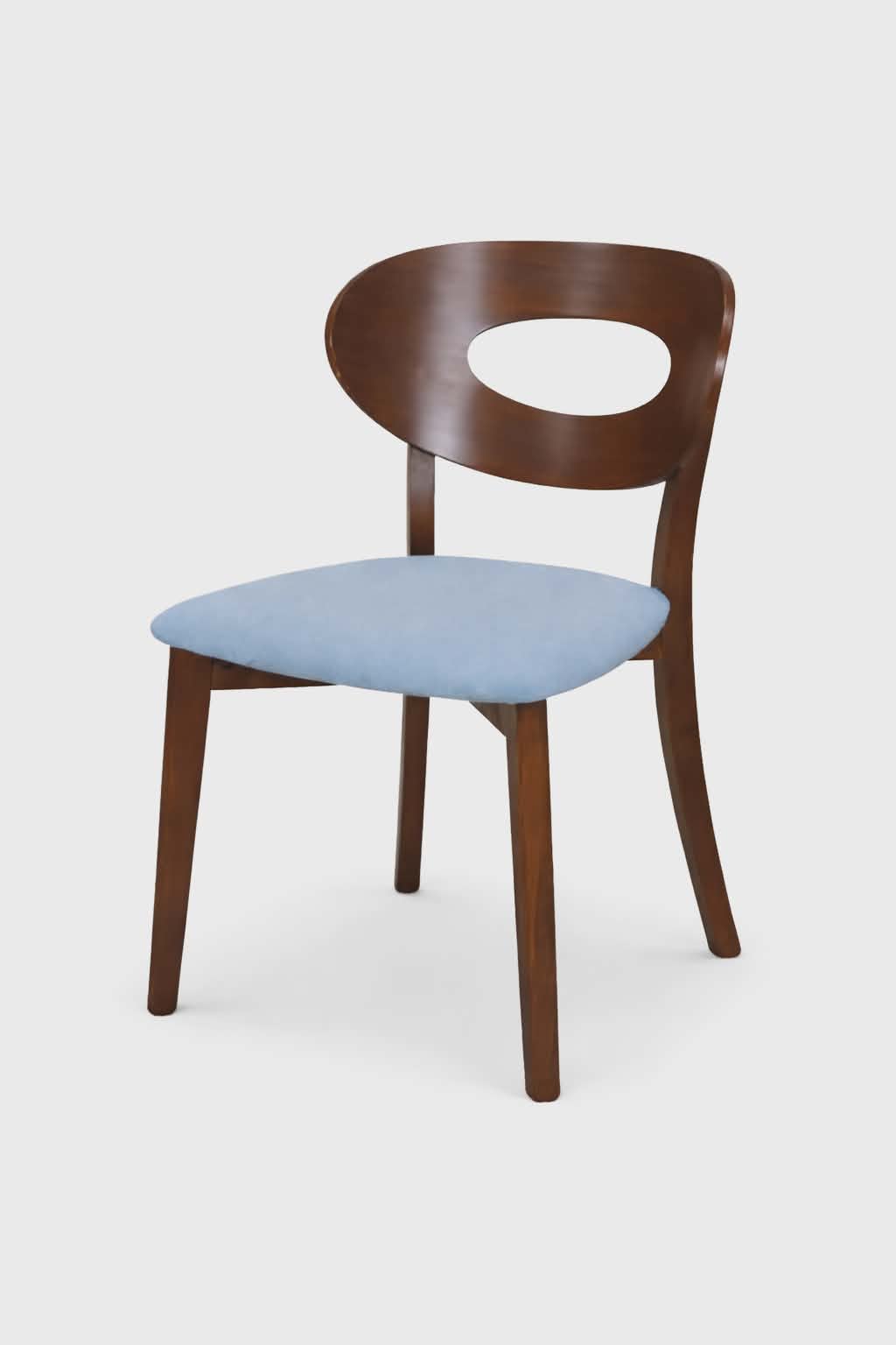 Krzesło Oczko o ponadczasowej, eleganckiej formie z charakterystycznym wycięciem w oparciu, które nadaje mu lekkości i ułatwia użytkowanie. Doskonale pasuje do wnętrz nowoczesnych, klasycznych oraz loftowych i industrialnych.
